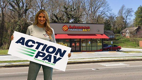 From Business: Deposit and Withdraw from your Action 247 account with cash at this Action Pay partner location.
